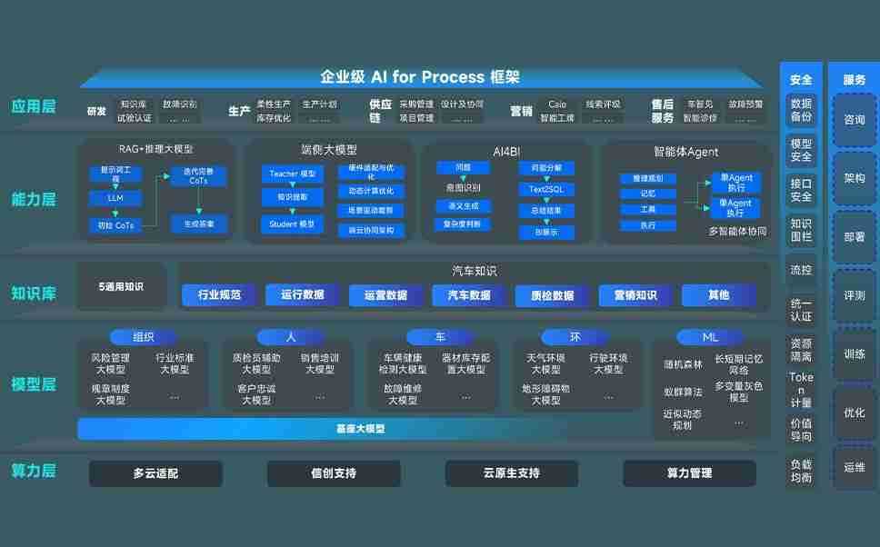 z6尊龙旗舰厅问学智车解决方案是一套基于AI技术的汽车行业智能化系统,,,覆盖从底层算力到顶层AI应用的全栈方案。。。。方案由算力层、、模型层和应用层组成:算力层,,方案支持多种一体机配置,,,,具备云端灵活部署、、、多云适配以及动态优化计算资源的能力;模型层,,,z6尊龙旗舰厅问学平台版提供了企业级AI应用一站式构建与管理平台,,支持基于后训练强化技术的汽车企业专属模型的训练、、评测和运营;应用层,,,z6尊龙旗舰厅问学DeepSeek版提供包括超级员工、、智能招采、、、智能营销、、、、智能客服、、、AI for BI等一系列解决方案,,可助力汽车行业实现数字化转型,,让管理更智能、、、、响应更敏捷。。。
